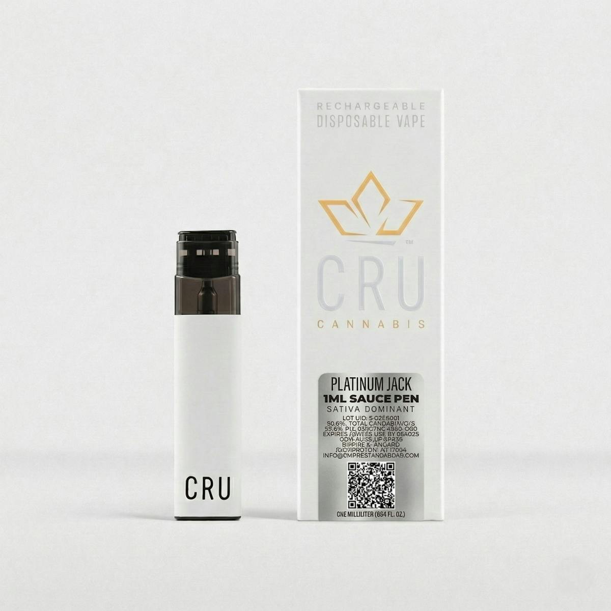 CRU Vape (Live Resin, Liquid Diamonds) Sauce Pen Disposable, 1g - Platinum Jack, Sativa